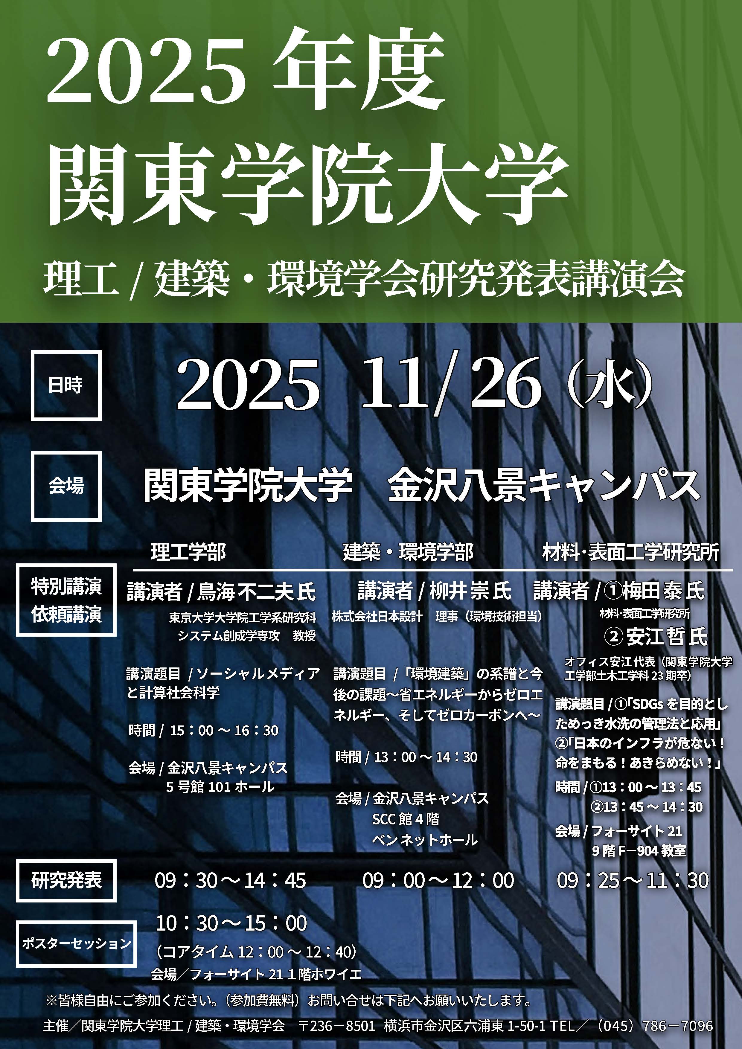 理工学部及び建築・環境学部における教育・研究の一層の充実と躍進を図ることを目的として、関連企業や地域社会との連携のもとに、学期内の一日を、研究発表、特別講演、業績展示等にあてることを主旨としています。